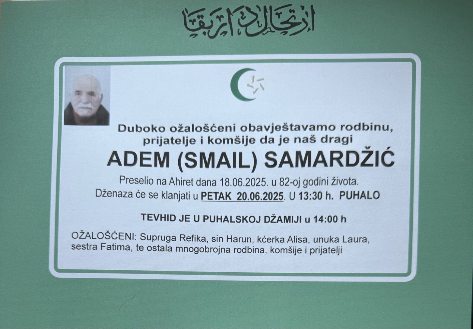 INNA LILLAHI VE INNA ILEJHI RADŽIUN “Svi smo Allahovi i svi se Njemu vraćamo.” (Kur’an) Molimo Uzvišenog Allaha da mu se smiluje, oprosti grijehe i uvede u Džennet, a porodici podari sabur. AMIN