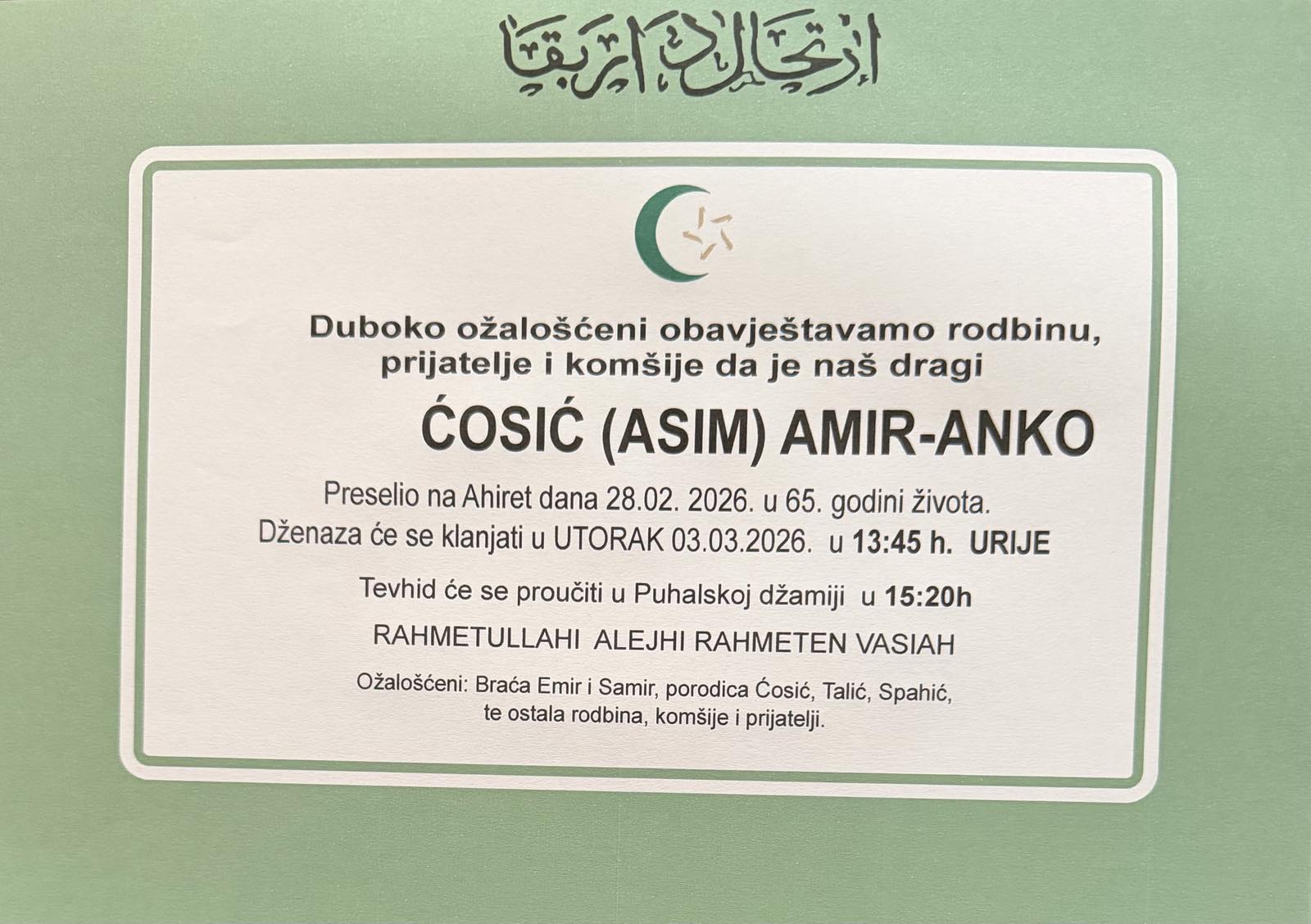 Molimo Uzvišenog Allaha da mu se smiluje, oprosti grijehe i uvede u Džennet, a porodici podari sabur. AMIN