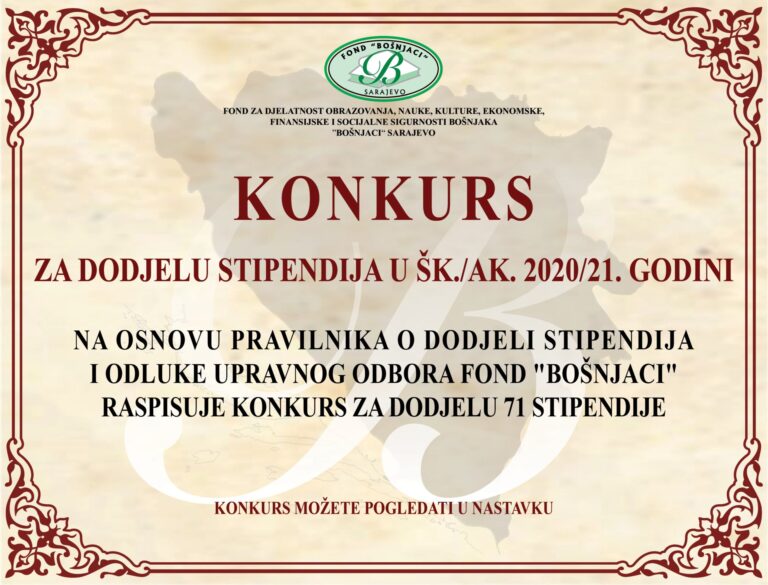Fond „Bošnjaci“ raspisao konkurs za dodjelu stipendija